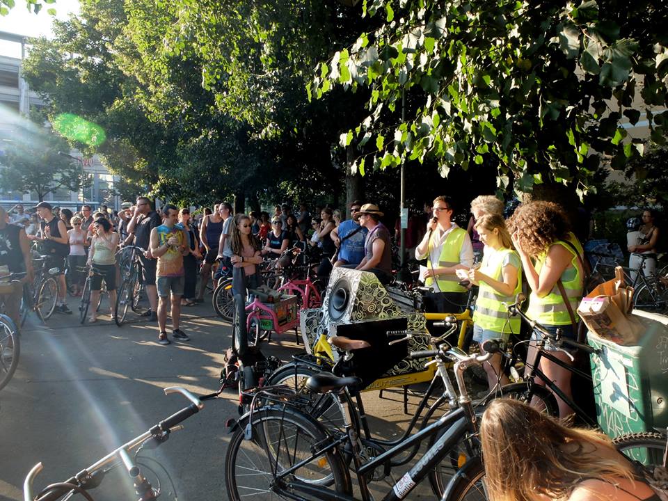 The first Berlin tour took place in Friedrichshain/Lichtenberg on July 31, 2014 and was attended by roughly 350 cyclists. It included the participation of more than 25 artists/performers and 10 art and cycling initiatives. The tour will continue to take place annually.